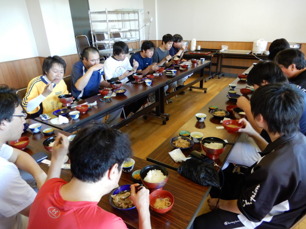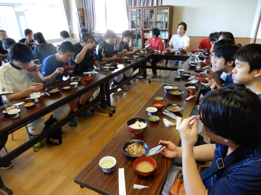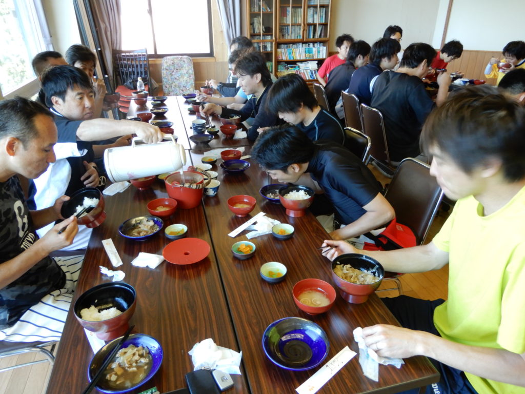 合宿飯 2018-06-172021-12-31ストレッチにより全員の体がほぐれたら一旦宿に戻り、午後の本格練習に向け腹ごしらえ ご飯前の一服♪ 田中さん、写っている鏡ぐらいスリムになれたらいいね! 昼食風景1、そのままおかずとして食べる人もいれば 昼食風景2、ごはんにかけて丼で食す人もいれば 昼食風景3、三杯おかわりする大食漢もいました 天気も快晴、午後の練習もまちきれない ボブさん、練習に行きますよ!