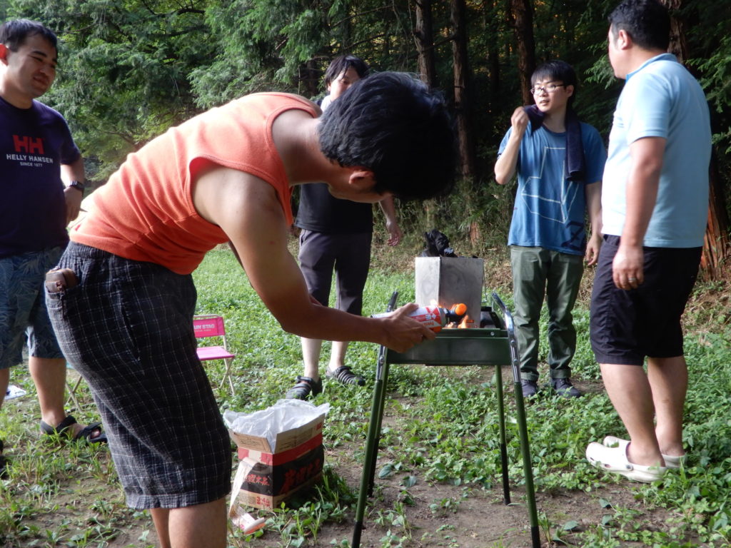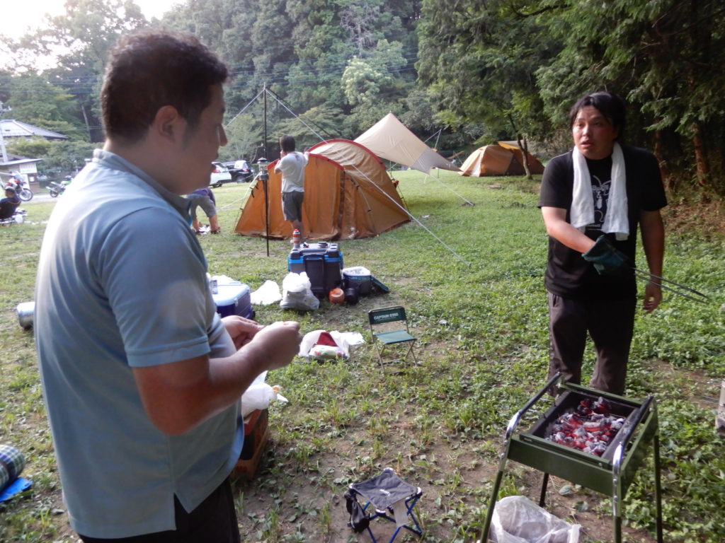テントにタープのセッティングができ、いよいよバーベキューの開始です