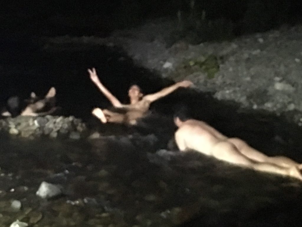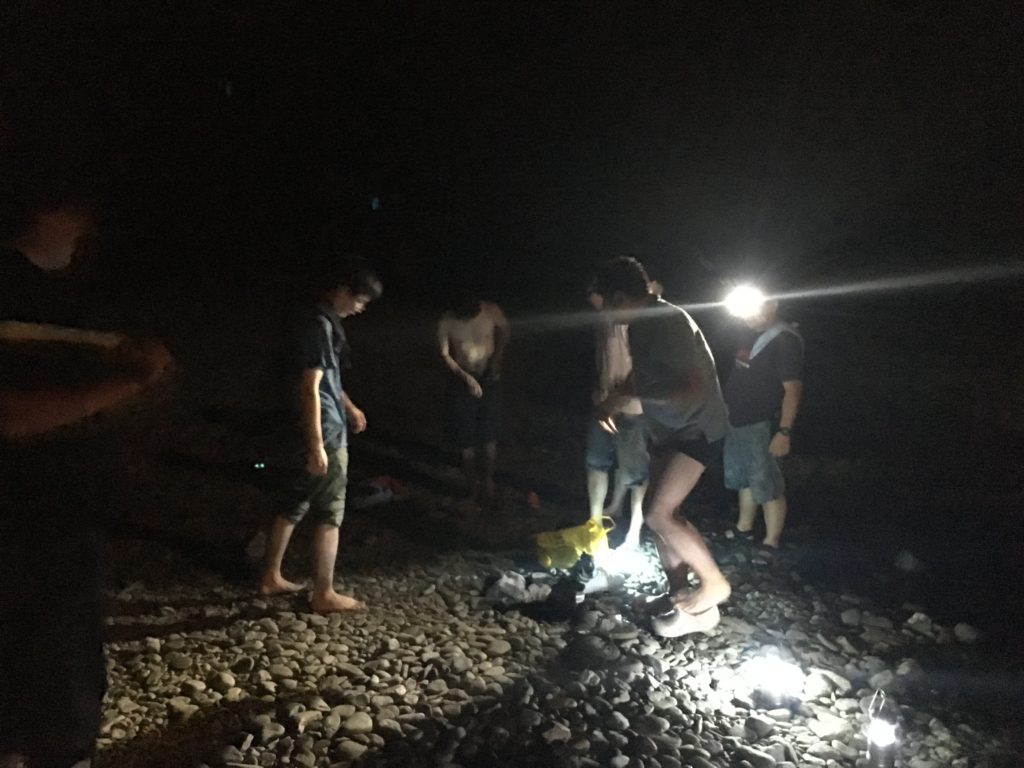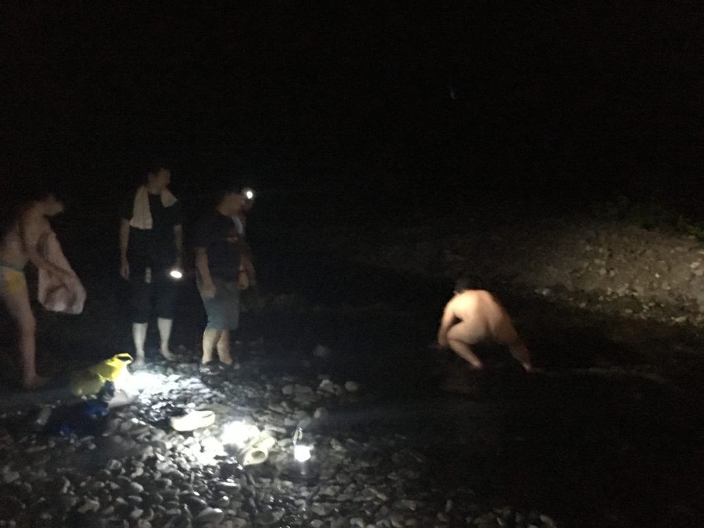 22時過ぎにぞろぞろと川に出発、酔っ払っているから危ないですが水深20cmぐらいしかないので大丈夫です