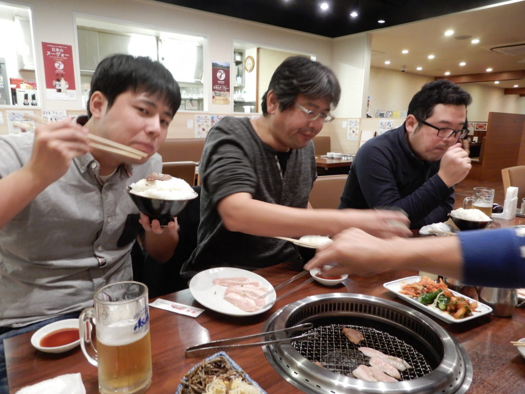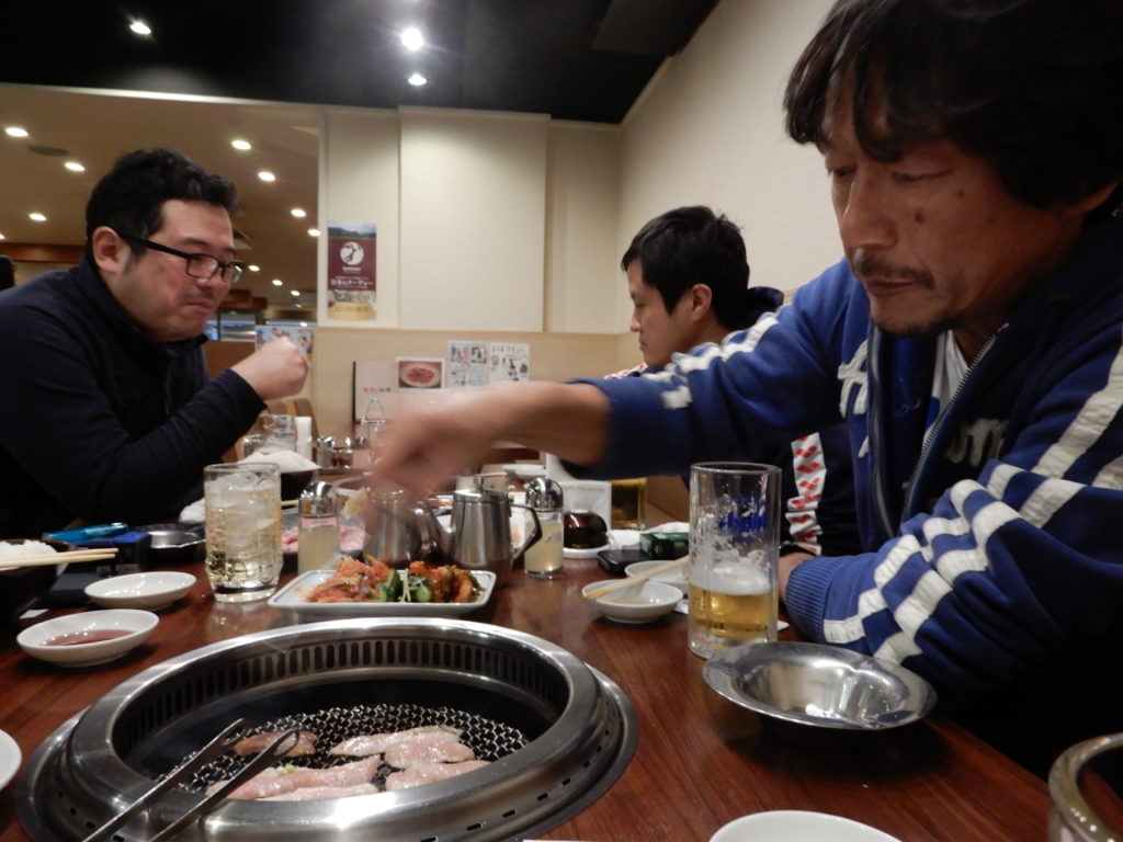 チームは11-1で快勝し、食事目当てで終了間際に来た健太さんの入院前の元気付けを兼ねて久しぶりの焼肉パーティーでした