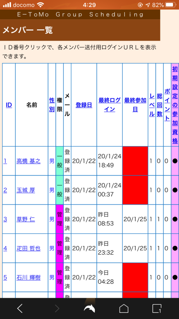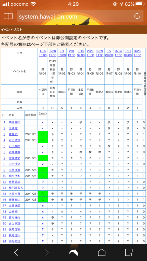 出欠表を活用し、今年一年も多くの方が参加して頂きたいと思います
